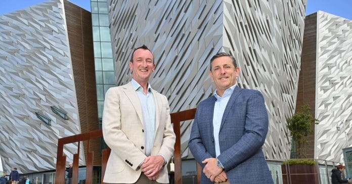 Directors Mark McElroy and Mark O’Connor are pictured at one of the company’s clients, Titanic Belfast. Marcon was involved in the original fitout of the world-leading visitor attraction when it opened in 2012 and again last year as part of the multi-million-pound refreshment programme.